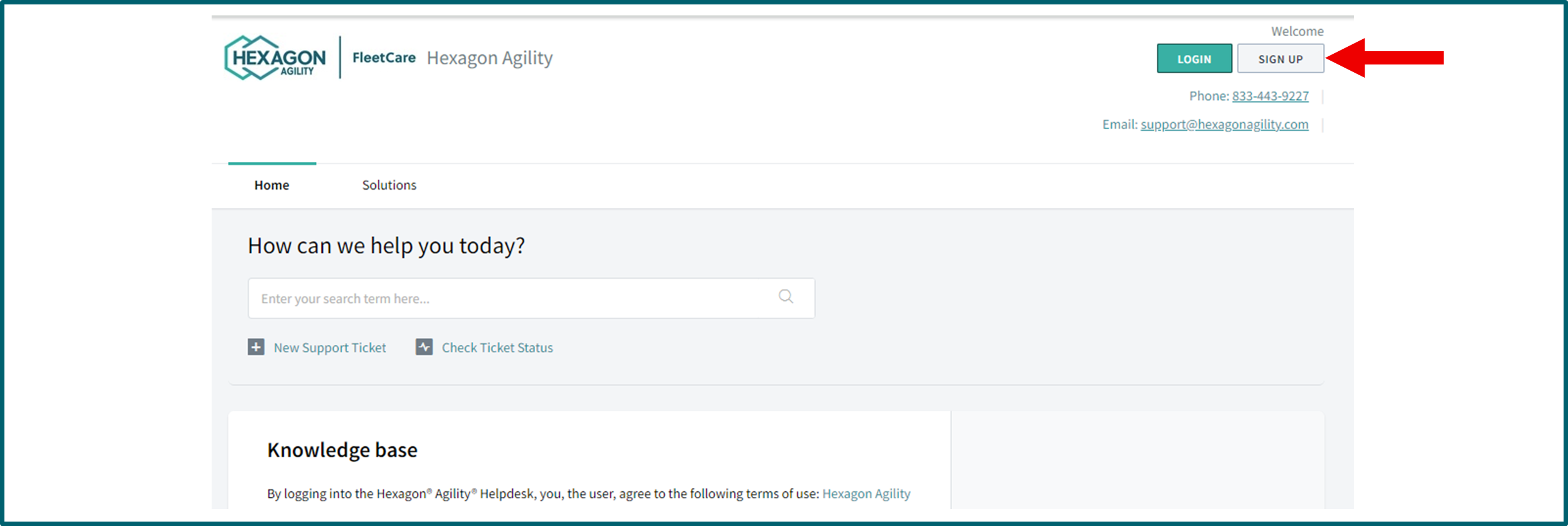 Instructions to set up a Hexagon Agility FleetCare® Helpdesk account.